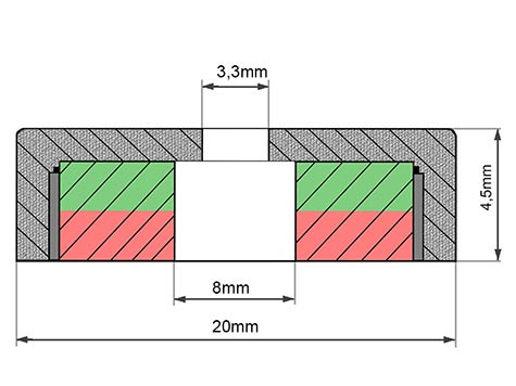 POT-H 20x4 NEODYM rögzítő mágnes csavarfészekkel