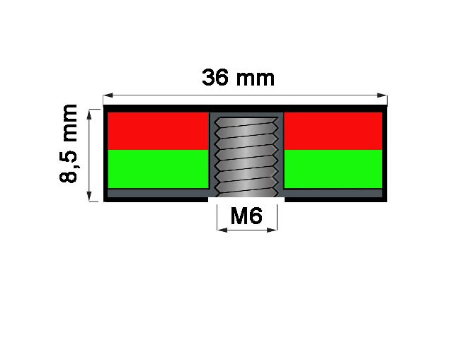 POT-IB 36x8 NEODYM rögzítő mágnes belső menettel, gumibevonattal